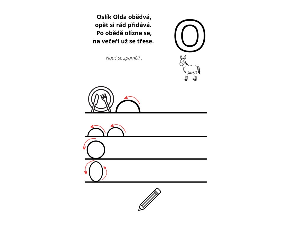 Soubor obsahuje celkem 49 stran v PDF. Básničku, omalovánku a grafomotorický list ke každému písmenu abecedy.