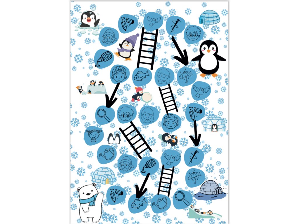 PDF soubor 2 veselých her s Tučňáky k laminaci. Hráč hodí kostkou, dojde na políčko, pojmenuje obrázek s důrazem na správnou tvorbu hlásky “L” nebo “ K”ŽEBŘÍK - šplhá nahoru, ŠIPKA padá dolů.